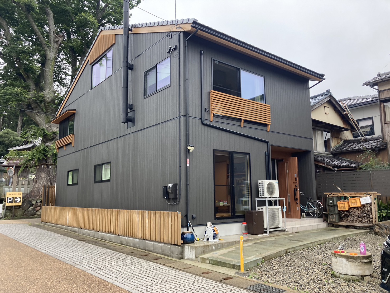 ご両親(パパ・ママ)と2人のお子様、計4人が暮らす3世帯同居のお家。近所には有名な神社があり、年に一度のお祭りでは家の前を山車が駆け抜ける伝統的な行事が楽しめます。そこで、2階から祭りを観覧できる広いステージ状のベランダを新設しました。