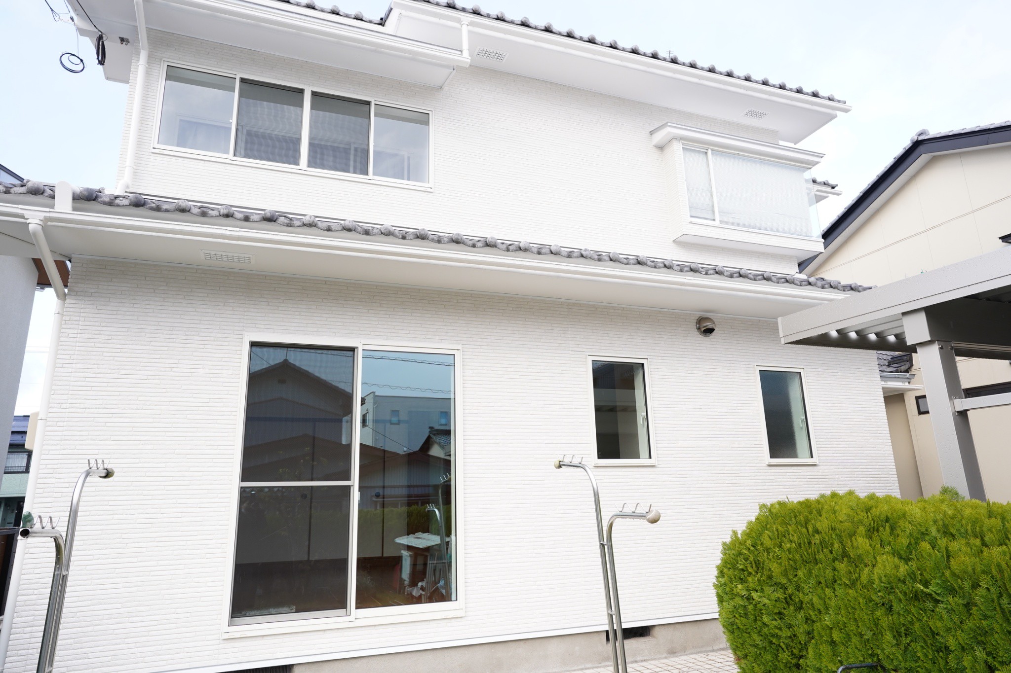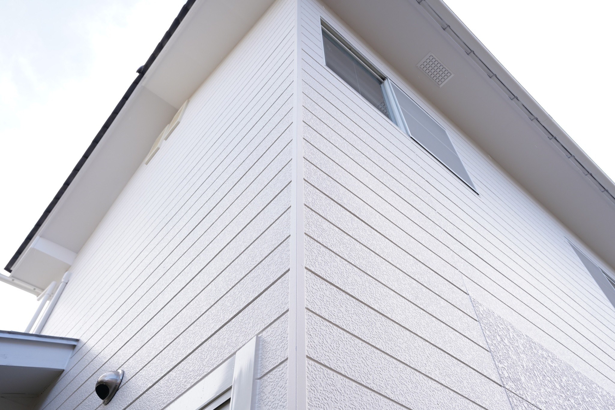 「見せたい面」と「守りたい面」を分ける お家の顔となる正面の1面は、サイディングを全面張り替え。残りの3面は部分的な張り替えと塗装を組み合わせることで、コストを抑えながらも、建物全体の耐久性と美観をしっかりと引き上げました。